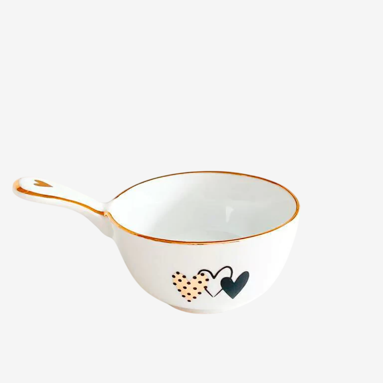 Aposte nessa panelinha de porcelana com detalhes e borda ouro, pra trazer um toque de charme e sofisticação pra sua cozinha e mesa posta.