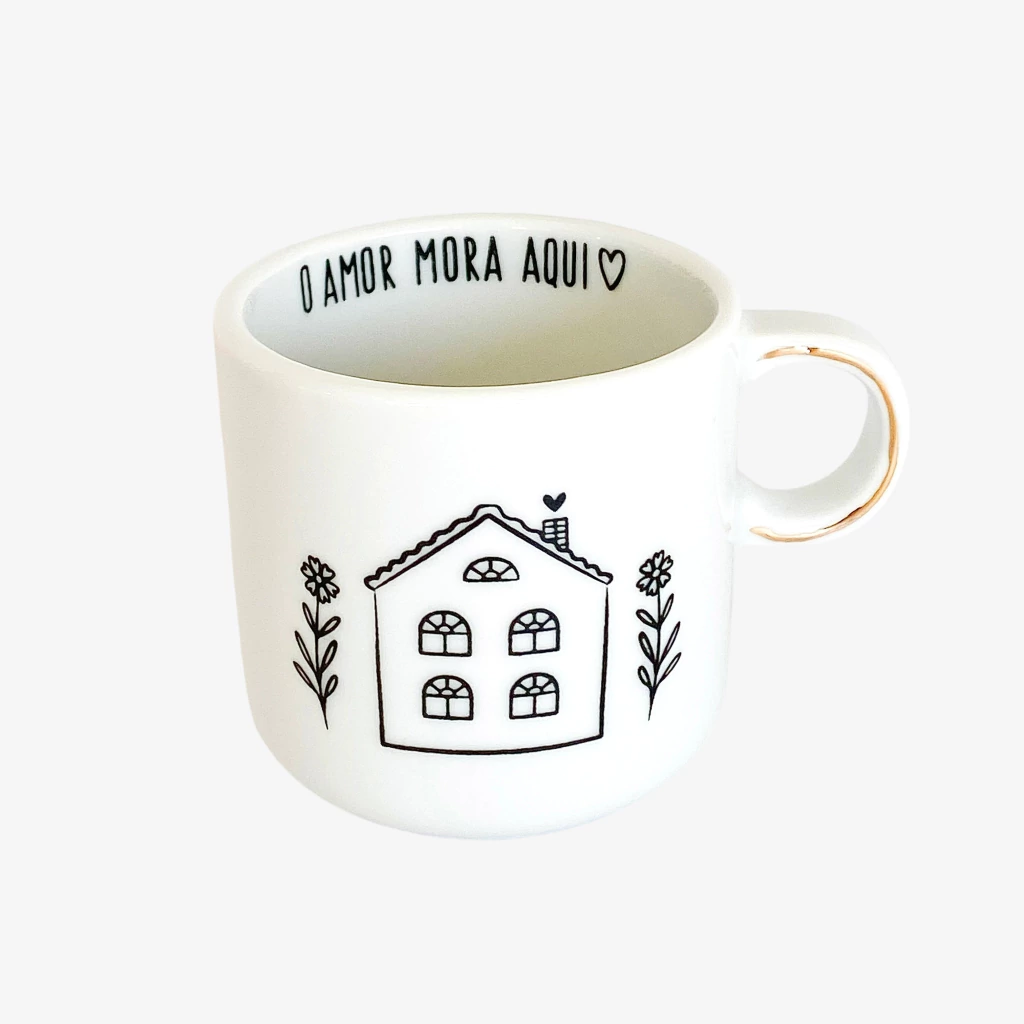 A Caneca Casinha Amor é a escolha perfeita para quem deseja adicionar um toque de charme e sofisticação ao momento do café, chá ou chocolate. Com uma delicada estampa de casinha e um detalhe lindo em ouro na alça, esta caneca une funcionalidade e estilo, tornando cada pausa ainda mais especial.