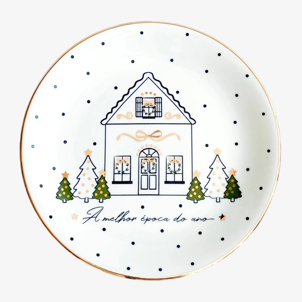 Casinha de Natal Prato de Sobremesa – transforme sua mesa e decoração natalina com elegância e charme!